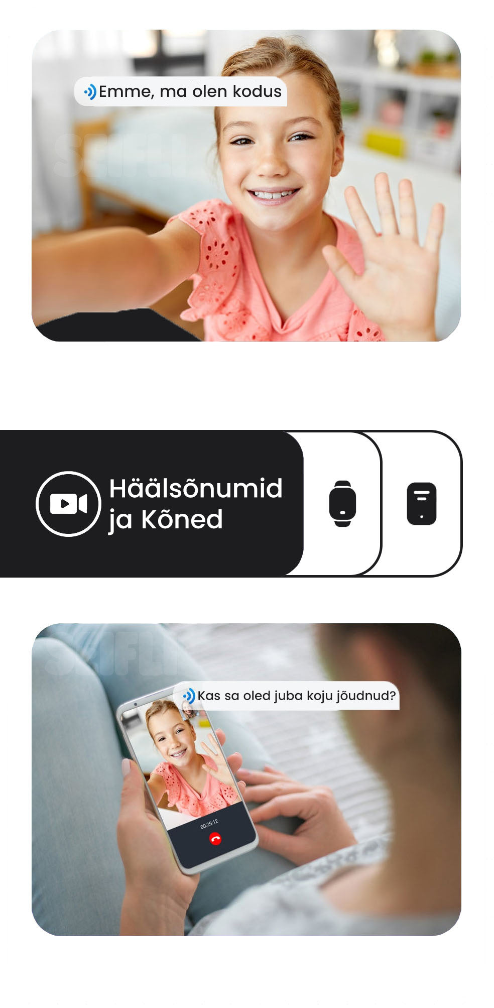 Vanemad saavad mobiilirakenduse kaudu ja lapsed kella kaudu igal ajal üksteisele helistada ning häälsõnumeid saata.
